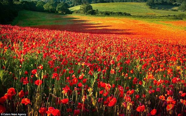 Đi qua cánh đồng chiến tranh, nh́n thấy 1 loài hoa dại mọc lên, đỏ rực một màu hoa, đỏ thắm như máu...