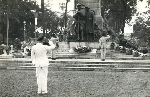 Lính Việt-Pháp diễn hành lần cuối tại CT Chiến sĩ trước khi quân Pháp rời VN vĩnh viễn. (Góc phải là Cty Cấp Nước)